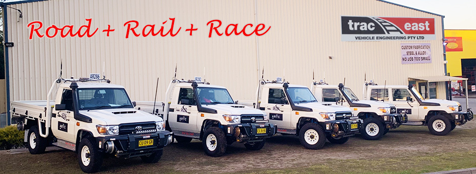 Trac East have been building, servicing and maintaining Hirail since 2005. We proudly service NSW and the east coast of Australia with all needed to run road rail on the rail system. In doing so, we work in conjunction with ARTC, Railcorp, John Holland, JHG CRN, Metro, Vline, PTS, light rail and the private sector. We are located in Morisset 1hr north of Sydney and 1hr south of Newcastle.
